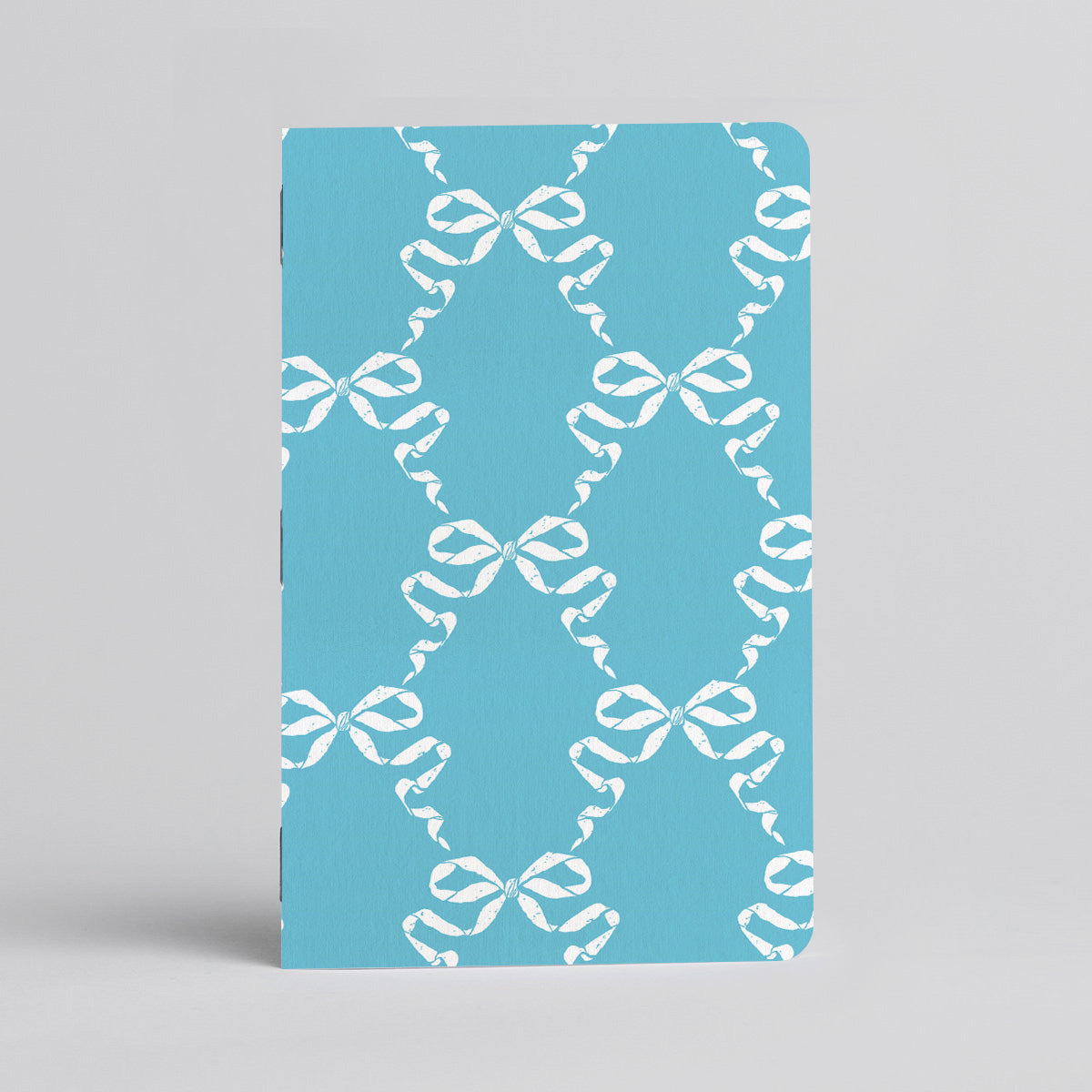 A light blue notebook with a delicate white bow pattern and a soft coquette aesthetic, perfect for notes, lists, and everyday writing.